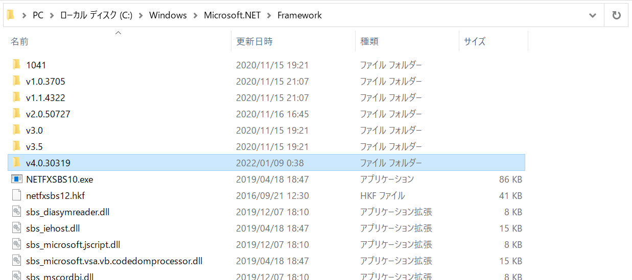 いくつかのバージョンが備えられていますが、投稿時点での最新版はv4.0.30319になります。