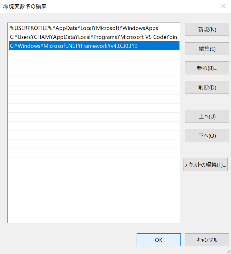 C:\Windows\Microsoft.NET\Framework\v4.0.30319を登録環境変数の詳細は下記リンクを参照ください。
