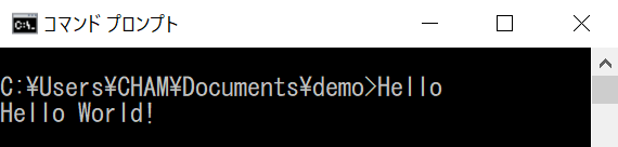 コンパイルが完了すると、同じディレクトリに Hello.exe という実行可能ファイルが生成されます。