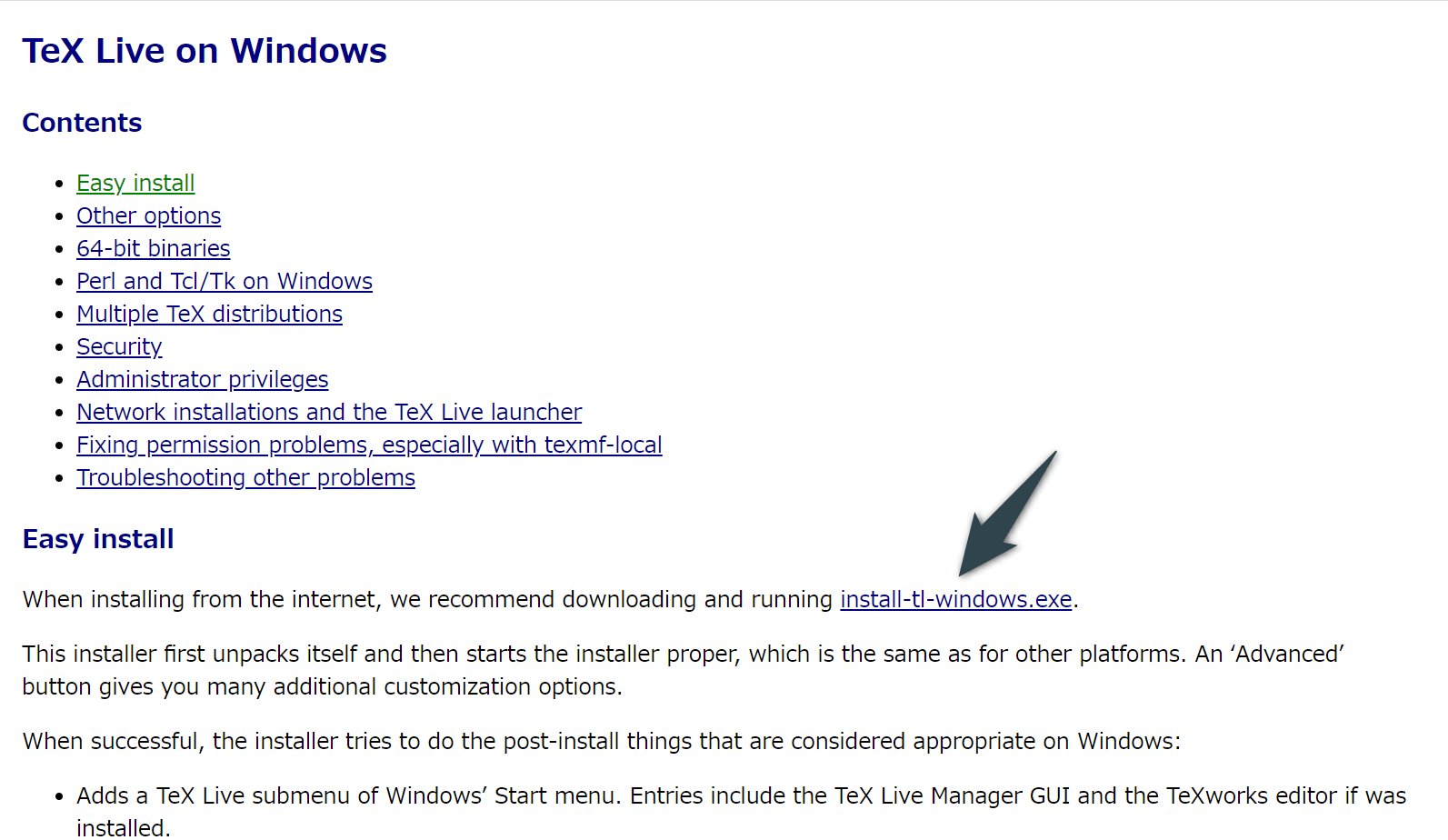 - 「Easy Enstall」の「install-tl-windows.exe」をクリック(ダウンロード開始)