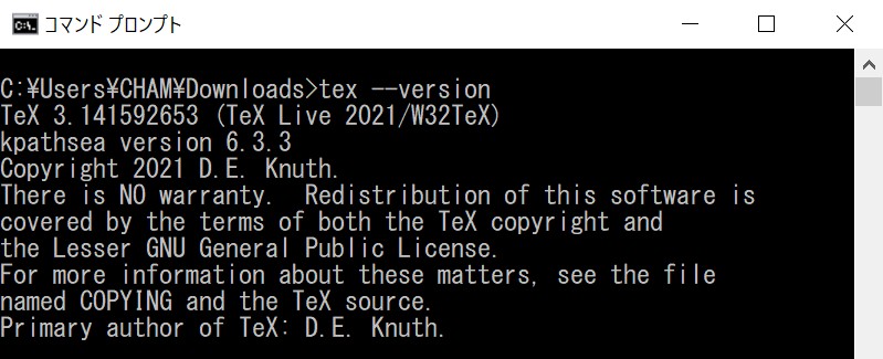 参考までに、latex --version