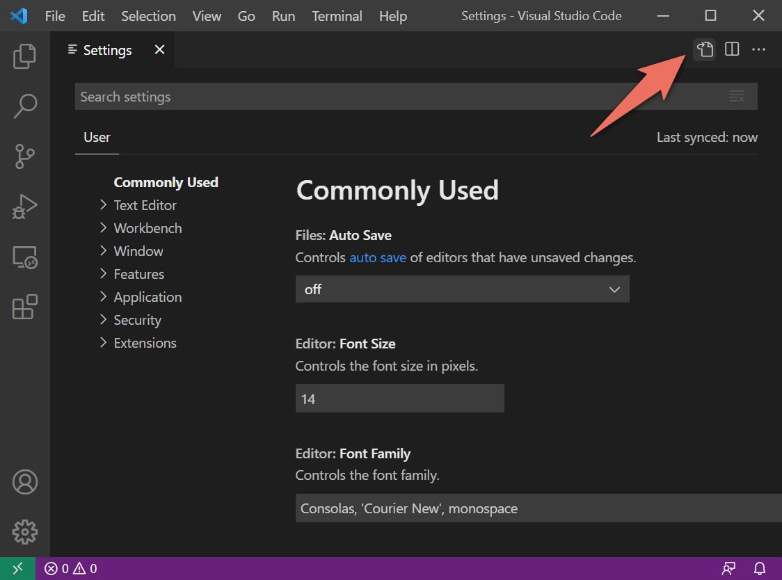 を開きます。Ctrl + ,