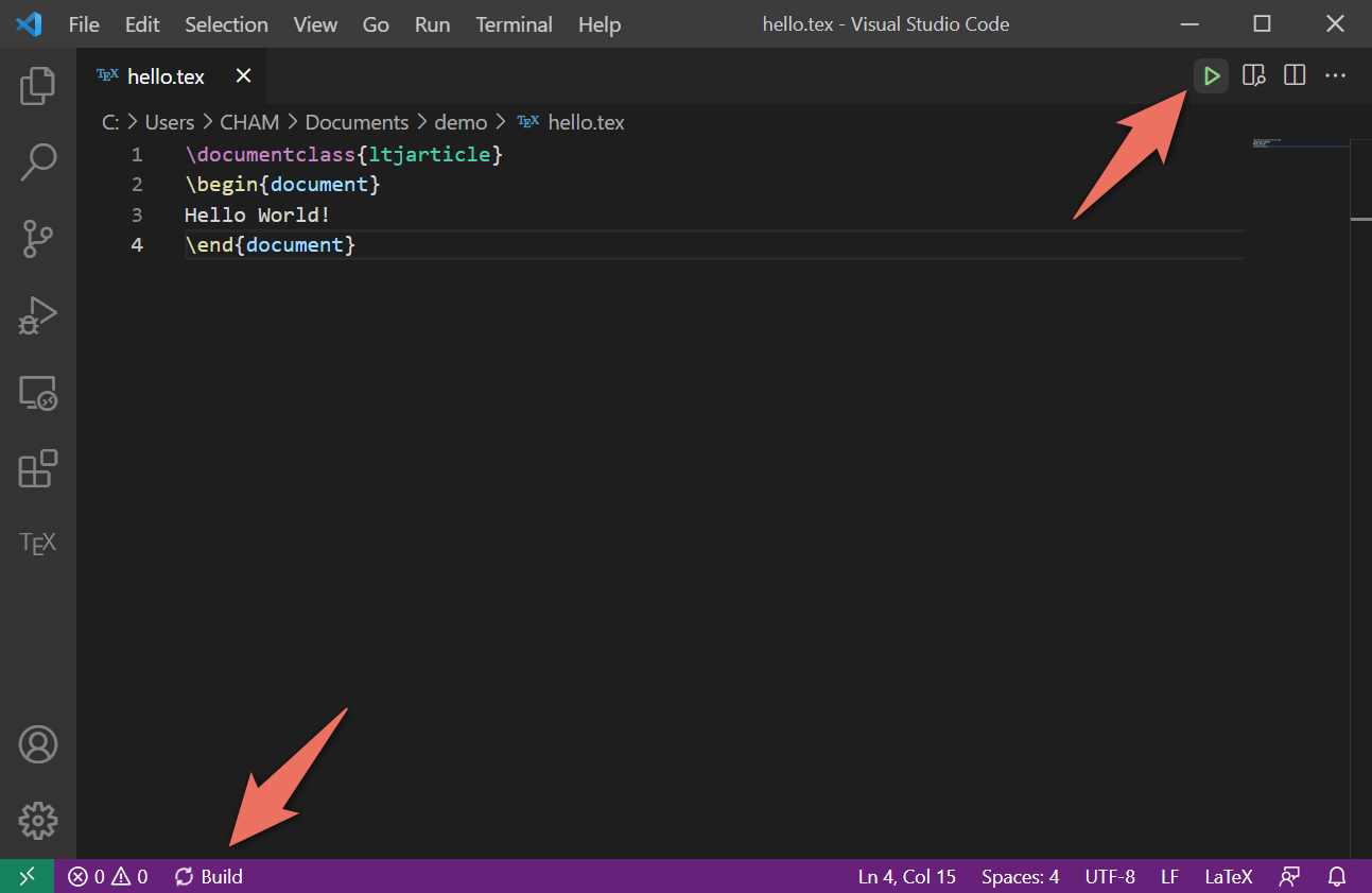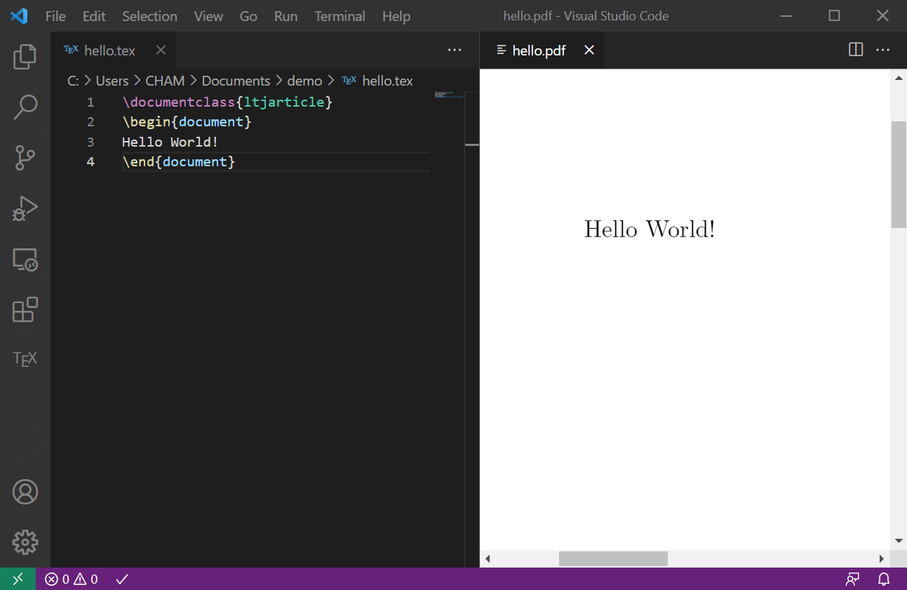 Visual Studio Code(VS Code)と 各種 LaTeX とを連携させることにより、テキストエディタ上でコンパイルの実行や PDF への変換、プレビュー等を簡単に行うことができます。