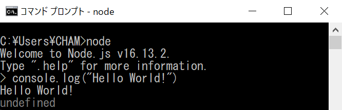 コマンドプロンプトにnodeと入力することで REPL を起動します。