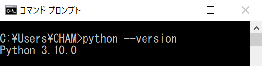 コマンドプロンプトに下記コマンドを入力し、インストールした Python バージョンがリターンされることを確認します。