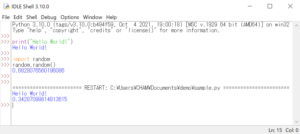 同様に、Python 環境においては、インタラクティブシェルと呼ばれるシェルが備えられており、ソースコードを記述したスクリプトファイルを実行することも可能です。