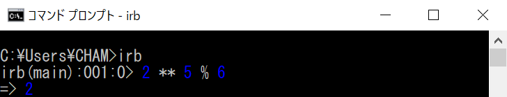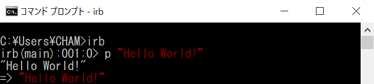 コマンドプロンプトにirbと入力することでインタプリタを起動します。