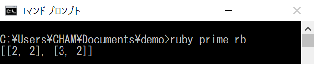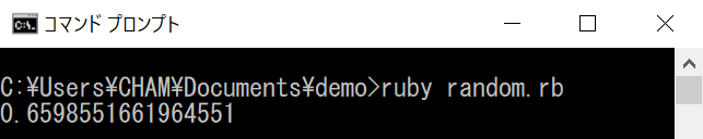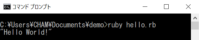 コマンドプロンプトを起動して、hello.rb が存在するディレクトリに移動します。